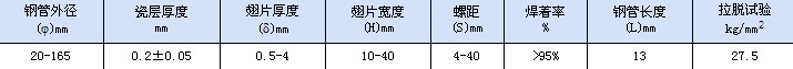 我公司設計生產(chǎn)的搪瓷螺旋翅片管的規(guī)格型號見下表。